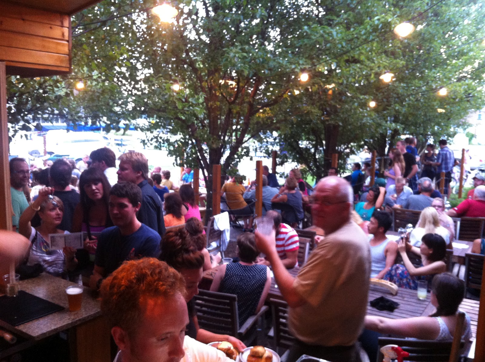 2 more shots of the bar from each side: one from the host desk, one view down South Street (booth seating & server station on right)